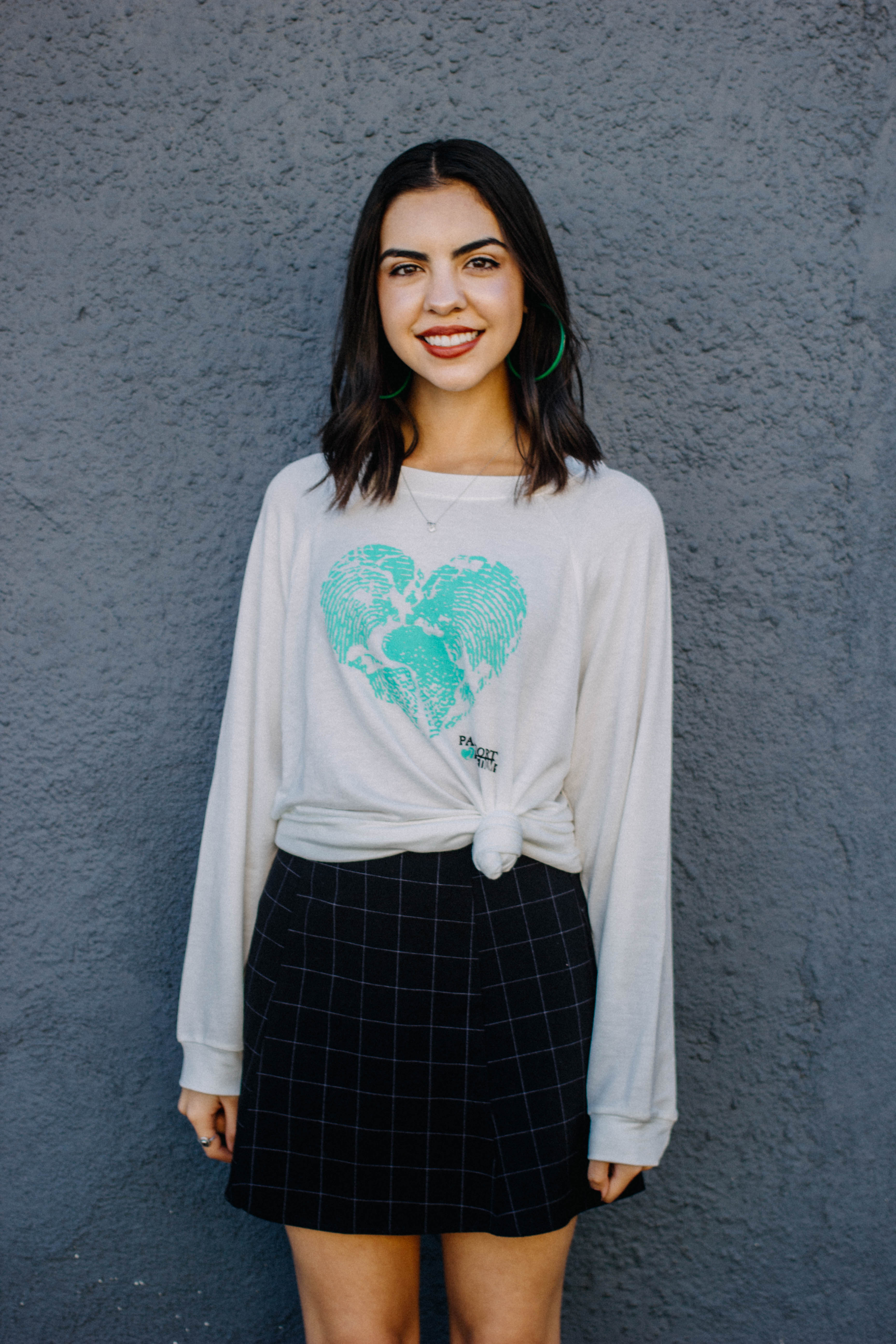 60% rayon, 37% polyester, 3% spandex Sea Green Finger heartprint logo
