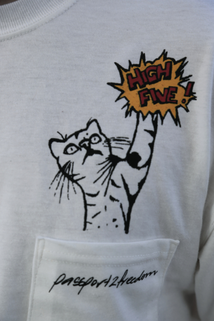 100% cotton Fun #momokitty highfive pocket tee