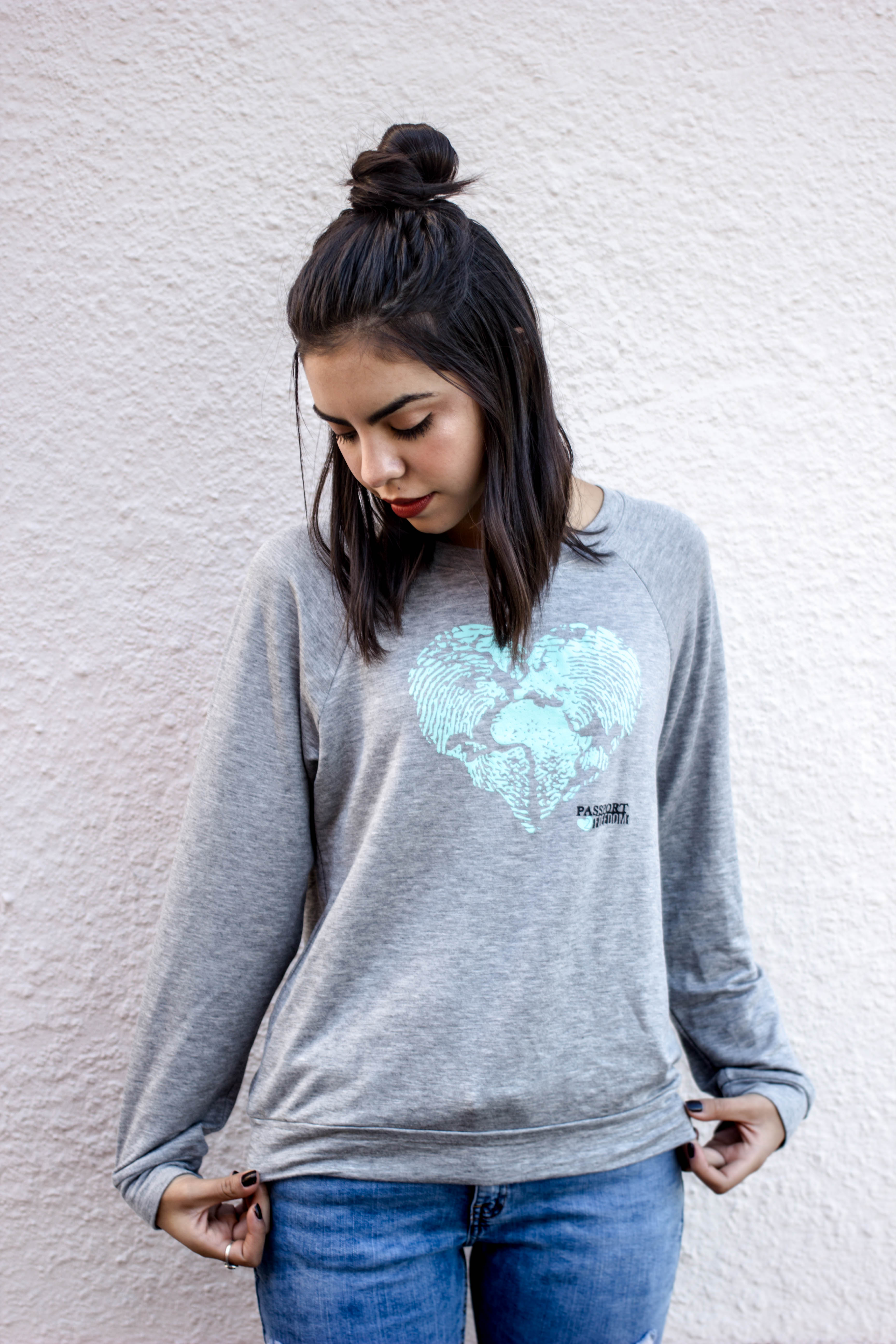 60% rayon, 37% polyester, 3% spandex Sea Green Finger heartprint logo